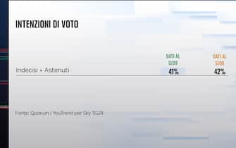 Indecisi e astenuti, arrivano al 41%, con dunque il 59% di italiani che ha deciso il proprio voto. Almeno un 5% di italiani ha deciso di andare a votare ma non sa ancora per chi