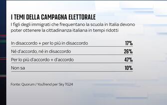 Dal sondaggio emerge anche un grande favore per lo ius scholae: il 47% si dice d'accordo contro il 17% dei contrari