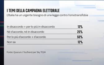 Il 50% degli italiani pensa che l'Italia abbia urgentemente bisogno di una legge contro l'omotransfobia