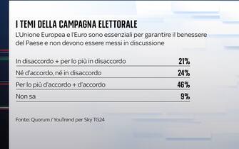 Per quanto riguarda i temi della campagna elettorale, in politica estera gli italiani rimangono "europeisti" e ritengono che l'Ue e l'Euro siano essenziali per il benessere del nostro Paese