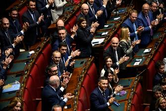 Ad applaudire, tra le fila del centrodestra, anche la leader di Fratelli d’Italia, Giorgia Meloni, che con tutta probabilità sarà la nuova premier italiana