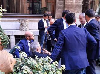 In mattinata, lo Stato maggiore della Lega si era riunito in cortile a Montecitorio in delegazione per salutare Umberto Bossi, accompagnato per l'occasione dal figlio Renzo. Matteo Salvini è arrivato insieme a Giancarlo Giorgetti e Roberto Calderoli
