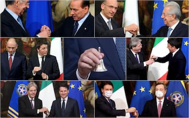Da decenni, la cerimonia della campanella è entrata nel collaudato protocollo di Palazzo Chigi. Segna il passaggio di potere tra il presidente del Consiglio uscente e il nuovo, attraverso lo scambio della campanella che il premier utilizza durante il Consiglio dei ministri. Ecco alcune delle cerimonie più recenti tra sorrisi e tensioni