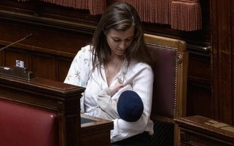 Per la prima volta nella storia parlamentare italiana, una deputata è entrata nell'Aula di Montecitorio con il suo bebè in braccio, che ha allattato mentre sedeva nell'Emiciclo. Si tratta di Gilda Sportiello di M5S. La parlamentare ha preso posto in una postazione nella parte alta dell'emiciclo, ha partecipato alla votazione finale del decreto legge in materia di pubblica amministrazione ed ha cominciato ad allattare il suo bimbo che è stato accolto da un applauso unanime. Sportiello, con una camicetta bianca addosso, è entrata in Aula da una delle porte posteriori. Il bimbo era in braccio, con in testa un uno zuccotto nero, per proteggerlo dal freddo dell'aria condizionata: è stato tranquillissimo e mentre veniva allattato è stato cullato. Alcune deputate si sono avvicinate a salutare ed a congratularsi.