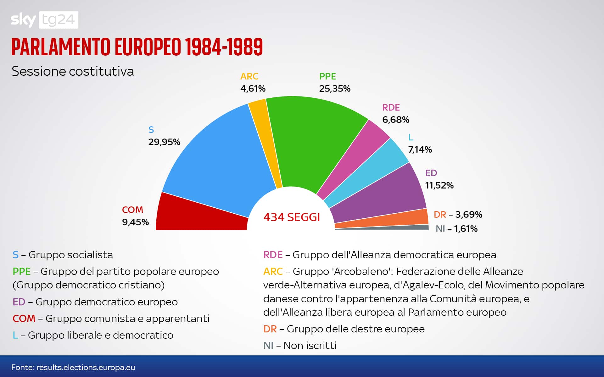 Il Gruppo socialista uscì vincente guadagnando seggi aggiuntivi rispetto al quinquennio precedente. Nel nuovo emiciclo si formarono nuovi gruppi come il Gruppo Arcobaleno, in cui confluirono gli ambientalisti e che per questo fu un antesignano del Gruppo verde. Non fu l’unica novità: nell’84 nacque anche il GDE (Gruppo delle destre europee) che raccoglieva le destre radicali e nazionaliste. Particolarmente significativo il risultato francese. Il Front National di Jean-Marie Le Pen, che era nato nel 1972, incassò oltre il 10% e assicurò così l'ingresso di una pattuglia di 10 eurodeputati. Come scriveva all'indomani del voto il quotidiano di riferimento della sinistra francese "Libération", il Front National, oggi denominato Rassemblement National, fu "le seul véritable vainqueur", il solo vero vincitore.
