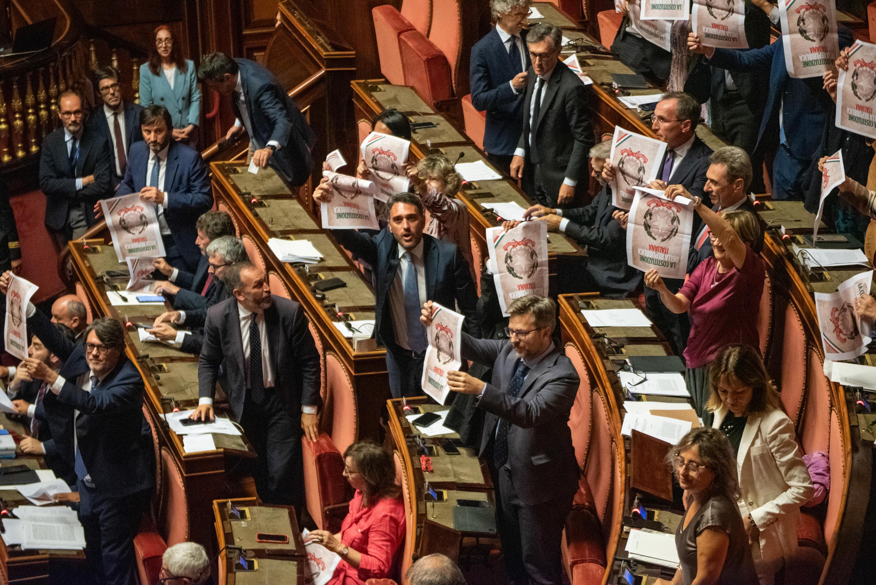 La scelta del Senato ha fatto scattare le prosteste dell'opposizione. I senatori del Pd, al momento del voto della riforma della separazione delle carriere, hanno tutti esposto un frontespizio della Costituzione rovesciata. I deputati del M5s hanno invece alzato un cartello con le immagini di Borsellino e Falcone con la scritta "non nel loro nome". Obiettivo quello di "dire alla maggioranza di non portare avanti questa legge in nome di Falcone e Borsellino, tirati in ballo dal centrodestra continuamente, in maniera impropria e offensiva nei confronti dei due simboli dell'antimafia". Nella protesta del Movimento 5 Stelle in aula, oltre a cartelli gialli con la scritta "Non nel loro nome" esposti anche altri cartelli con la scritta "nel loro" affiancata alle immagini di Gelli e Berlusconi.