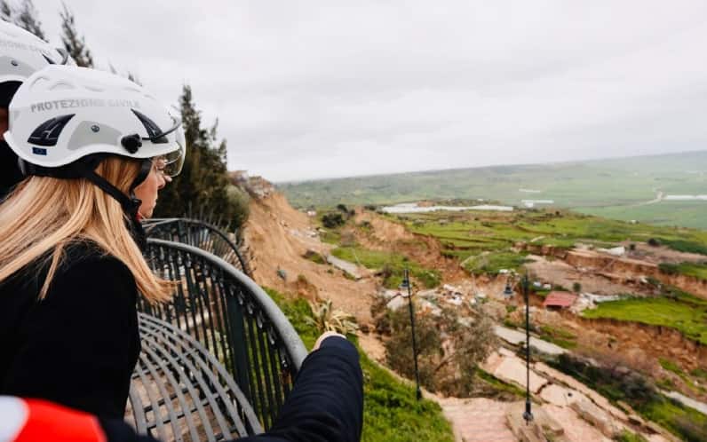 Accompagnata dal capo del Dipartimento della Protezione civile, Fabio Ciciliano, la premier è arrivata a Niscemi e, accolta dal sindaco Massimiliano Conti, ha fatto un sopralluogo nella zona rossa del Comune