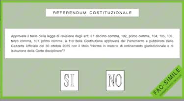 Sulla scheda, di colore verde, sarà presente il seguente quesito: “Approvate il testo della legge di revisione degli artt. 87, decimo comma, 102, primo comma, 104, 105, 106, terzo comma, 107, primo comma, e 110 della Costituzione approvata dal Parlamento e pubblicata nella Gazzetta Ufficiale del 30 ottobre 2025 con il titolo "Norme in materia di ordinamento giurisdizionale e di istituzione della Corte disciplinare"?”. In fondo due caselle, "SÌ" e "NO".