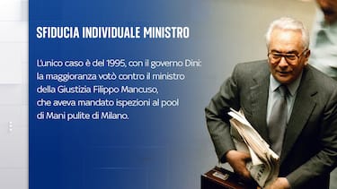 Va ricordato, però, che, fino ad ora, solo un ministro è stato effettivamente sfiduciato: si tratta di Filippo Mancuso, ministro della Giustizia durante il governo Dini, nel 1995. Nel pieno dell'inchiesta di Mani Pulite, il guardasigilli inviò un'ispezione al Tribunale di Milano.