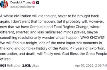 Iran, Trump: intera civiltà morirà stanotte, non vorrei ma è probabile