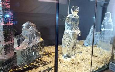 (ANSA) - MATERA, 5 DIC - La Natività, i rioni Sassi, la cattedrale e altre simboli della religiosità di Matera, capitale europea della cultura 2019, sono le particolarità del presepe di ghiaccio, che costituisce una delle attrazioni del programma" Vivi la Magia del Natale nella città di Matera" insieme al Presepe vivente nei Sassi e alla mostra dell'arte presepiale napoletana. Il presepe di ghiaccio, allestito in una teca di 20 metri quadrati negli ambienti dell'ex ospedale San Rocco, è opera dell'artista Francesco Falasconi, che ha scolpito le statue.