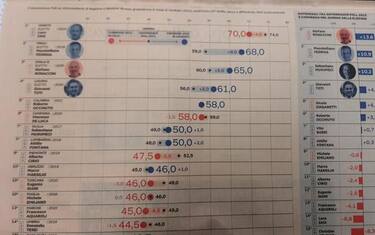 Per quanto riguarda i sindaci, Domenico Bennardi (Matera) è al 37/o posto ma la differenza dell'indice di gradimento rispetto al giorno delle elezioni è negativa del 13,5 per cento.