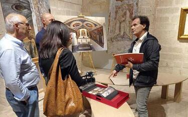 (ANSA) - MATERA, 16 SET - Siti rupestri, antiche basiliche, luoghi dell'anima, madonne e antichi manoscritti della cristianità custoditi a Malta, Roma e Matera. Sono i temi rappresentati in un dettagliato percorso fotografico della mostra "Eucarestia dono di Vita" dell'artista di fine art Maurizio Urso, che sarà inaugurata a Palazzo Viceconte domenica 18 settembre, nell'ambito del Congresso eucaristico nazionale "Tornare al gusto del pane e farci noi stessi pane" in programma a Matera dal 22 a 25 settembre, che si concluderà con la Santa Messa celebrata da Papa Francesco. (ANSA).