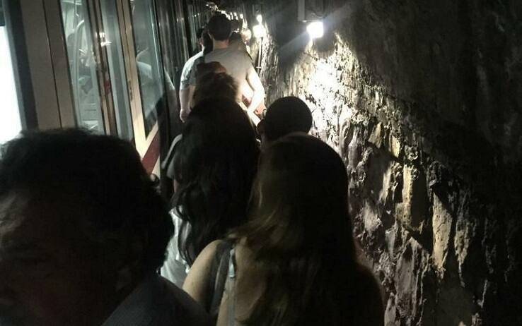 Un treno della metro di Roma si è fermato nella galleria tra le fermate della linea B, Circo Massimo e Colosseo. Per raggiungere quest'ultima i passeggeri sono poi scesi in centinaia, secondo quanto riferito, a piedi in galleria, illuminata dalle luci di emergenza (FOTO). Da quanto riferisce Atac su Twitter, la linea B è bloccata tra Castro Pertorio e San Paolo. Sempre oggi nella stazione metro Termini per quasi due ore è mancata l’illuminazione.