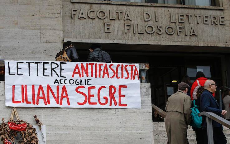 Al termine della cerimonia, la senatrice ha abbracciato Valerio Cerracchio, lo studente di destra che stamane ha parlato a nome di tutti gli studenti de La Sapienza, finito nei giorni scorsi al centro di polemiche in quanto gli studenti di sinistra non hanno apprezzato il fatto che dovesse intervenire lui quest'oggi. "Hai il ciuffo come mio nipote..posso darti un bacio o sono troppo vecchia?", gli ha detto sorridendo Segre. All'esterno dell'ateneo, un gruppetto di studenti ha gridato "La Sapienza antifascista accoglie Liliana Segre!", esponendo degli striscioni.