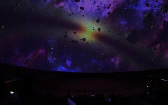 Ha aperto il 19 marzo, alla Città della scienza di Napoli, il più grande planetario 3D d'Italia. Nella foto, un'immagine dall'interno della struttura -