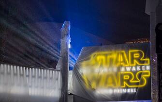 Una pattuglia di Stormtrooper sorveglia il cinema dell'anteprima losangelina di Star Wars: Il risveglio della Forza -