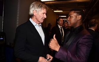 Il vecchio e il nuovo. Harrison Ford, che nella saga di Star Wars è conosciuto come Han Solo, e John Boyega. Come dire: due generazioni di eroi della galassia insieme -