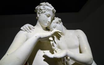 La mostra si apre con la scultura "Amore e Psiche stanti" di Antonio Canova, che incarna i canoni dell’estetica neoclassica (nella foto: "Amore e Psiche stanti" di Antonio Canova)-