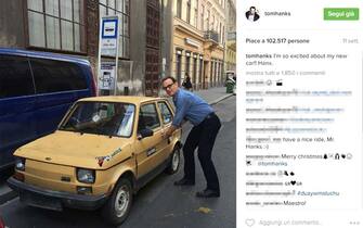 Tom Hanks al fianco di una Fiat 126 (dal suo account Instagram)