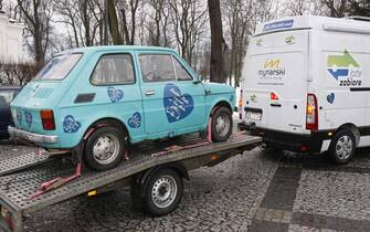 Una Fiat 126p del 1974 viene portata via dalla città di Suwalki, nella Polonia nord-orientale. A comprarla sono stati i cittadini della località polacca di Bielsko-Biala per regalarla a Tom Hanks