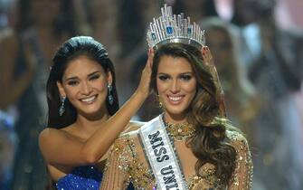 La vincitrice della scorsa edizione, la filippina Pia Wurtzbach, incorona la francese Iris Mittenaere -