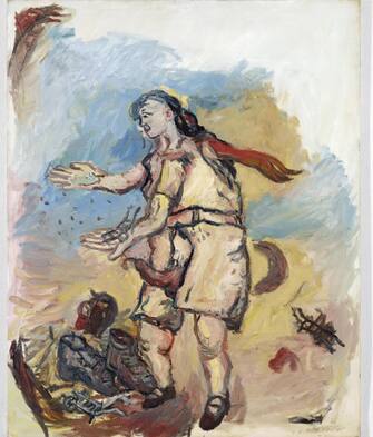 Sono soldati, pastori, ribelli, partigiani, pittori, pittori moderni, rossi, bianchi, dipinti da Baselitz tra il 1965 e il 1966, quasi colto da un raptus espressivo, forse per esprimere una profonda oscurità, interiore e collettiva –