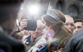 Tutta la città era in fermento per l'arrivo di Iris Mittenaere: la grande calca di folla ha creato qualche problema di movimento alla Miss -