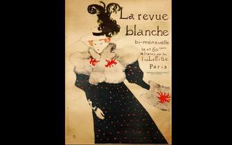 In mostra anche disegni a matita e a penna, grafiche promozionali e illustrazioni per giornali come La Revue blanche del 1895 –(Henri de Toulouse-Lautrec La Revue Blanche 1895 Color Lithography, 125,5x91,2 cm © Herakleidon Museum, Athens Greece)