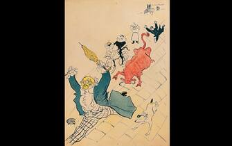 La Parigi bohémienne vista dal punto di vista di Henri de Toulouse-Lautrec viene raccontata all’interno della mostra attraverso arti visive, musica, moda e fotografia -(Henri de Toulouse-Lautrec La Vache Enragée (Before Letters) 1896 Color Lithography 70x57,5 cm © Herakleidon Museum, Athens Greece)