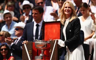 I due hanno estratto la coppa da una valigia Louis Vuitton, realizzata su misura per l'occasione. È la prima partnership di questo tipo con un brand - I bauli Louis Vuitton per il Roland Garros