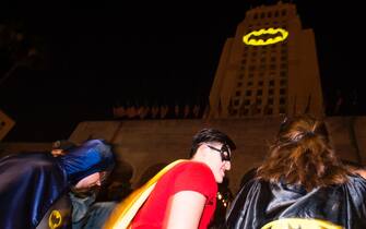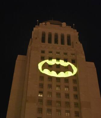 Los Angeles, sul municipio un bat-segnale per salutare Adam West. FOTO