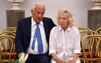 La moglie di Paolo Villaggio, Maura Albites, con Paolo Fresco alla camera ardente in Campidoglio. Intanto, a poche ore dalla morte dell’attore sono tornati in libreria anche i libri di Fantozzi - Addio Paolo Villaggio, i figli: "Camera ardente in Campidoglio". FOTO