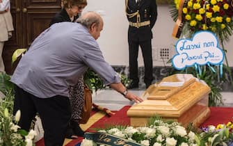 A rendere omaggio all’attore, scomparso lunedì a 84 anni, sono arrivati anche il ministro Franceschini, Enrico Montesano, Lino Banfi, Grillo e Casaleggio. Alla Casa del Cinema la cerimonia con familiari e amici - TUTTI I VIDEO