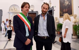 Il figlio di Paolo Villaggio, Pierfrancesco, con il vice sindaco della Capitale Luca Bergamo, alla camera ardente in Campidoglio - Paolo Villaggio, l'addio sui social network. Storify