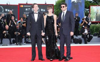 Micaela Ramazzotti e Patrick Bruel hanno accompagnato il regista Sebastiano Riso (tutti e tre nella foto) sul red carpet della 74esima edizione della Mostra del Cinema di Venezia per la presentazione di "Una famiglia". Il film del regista italiano è in concorso per il Leone D'Oro - Venezia 2017, "Una famiglia" di Riso secondo film italiano in gara