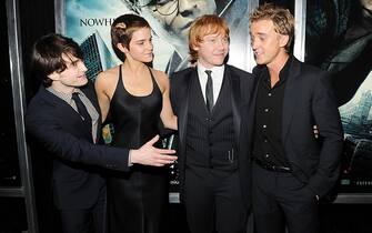 Felton veste i panni del personaggio in tutti i capitoli del franchise, dal 2001 fino al 2011. In foto, Daniel Radcliffe, Emma Watson, Tom Felton e Rupert Grint all’anteprima di “Harry Potter e i doni della morte – Parte 1” - Auguri Harry Potter: il maghetto compie 37 anni