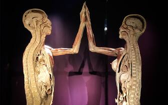 Oltre 350 tra organi e corpi umani sottoposti a uno speciale trattamento di conservazione, spogliati della pelle per mettere in luce muscoli e organi, sistemati in pose teatrali che vogliono simulare quelle tipiche della vita quotidiana (foto di Costanza Ruggeri/Sky tg24).