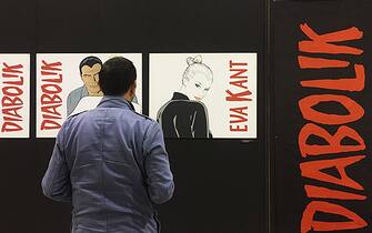 Diabolik protagonista di una delle grandi mostre in programma per questa XXII edizione del Romics. Una carrellata di poster, stampe e litografie prodotte nel corso dei cinquantacinque anni di vita del criminale più amato e letto del fumetto italiano (foto di Costanza Ruggeri/Sky TG24) -Il sito del Romics