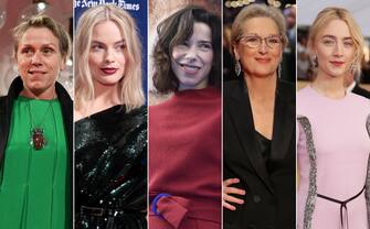 Da sinistra a destra, le candidate agli Oscar 2018 per la categoria Miglior Attrice Protagonista: Frances McDormand, Margot Robbie, Sally Hawkins, Meryl Streep, e Saoirse Ronan
