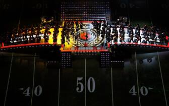 Una coreografia spettacolare ha fatto da contesto ai brani Start Me Up", "Rough Justice" e "(I Can't Get No) Satisfaction" cantati dalla storica band per il pubblico presente al match e per i milioni di telespettatori che hanno seguito lo show in tv -