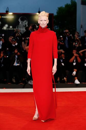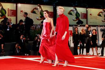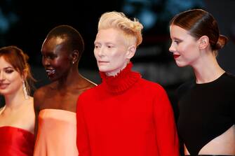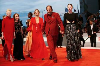 Red carpet rosso come il sangue per Suspiria, la nuova versione dell'horror di Dario Argento firmata da Luca Guadagnino. Al Festival del Cinema di Venezia ha sfilato il cast completo, che vede come protagoniste Dakota Johnson e Tilda Swinton.