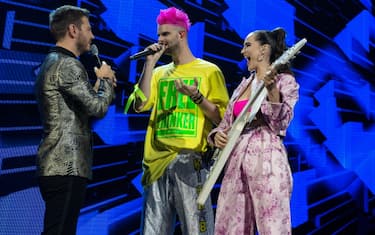 Capelli rosa fluo per Tucker e maglietta dello stesso colore per Sophie, sul palco del talent show di Sky Uno l’incontro tra i mondi opposti della band electro dance inizia dal look