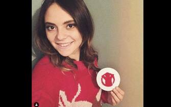 La cantante Francesca Michielin si è fatta immortalare con un tipico maglione natalizio rosso, con tanto di renna in ricamo, per la campagna di Save the Children -