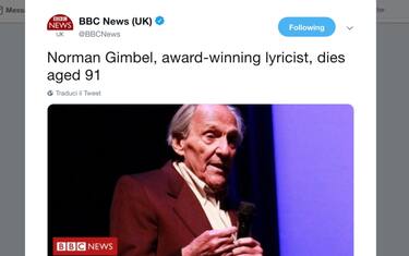 Norman Gimbel, autore e paroliere musicale americano, è morto a 91 anni. Vincitore di un premio Oscar, è il creatore della canzone "Killing me softly with his song" e di numerose sigle tv tra cui quella della serie "Happy Days". Gimbel è deceduto il 19 dicembre a Montecito, ha riferito suo figlio Tony all'Hollywood Reporter. Ma la notizia è trapelata solo con dieci giorni di ritardo.