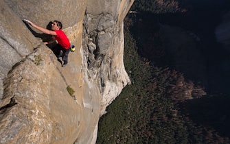 Honnold ha scalato per quasi mille metri di dislivello scalati completamente in free solo senza corda e senza protezioni -