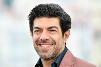 Pierfrancesco Favino, giacca rosa e occhiali da sole