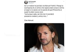 Dodi Battaglia: "Piango la scomparsa di un amico che sapeva dare corpo e anima ai sogni e lo saluto con le parole di quel Pinocchio al quale ha dato nuova voce: 'Comunque vada, sai che non ti scorderò. Possiamo crederci, amico mio...'" (foto Twitter/Dodi Battaglia)