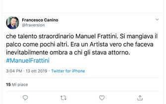 Senza parole è il musicista Luca Jurman che su Facebook ha ricordato come con Frattini bastasse uno sguardo per capirsi. "Non mancherai solo a me - si legge nel post - mancherai al Mondo dello spettacolo, dove eri rispettato, amato, temuto, ma soprattutto eri....tu!" (foto Facebook/Luca Jurman)