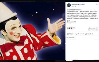 Con una foto vestito da Pinocchio lo ha ricordato anche Saverio Marconi, che aveva scoperto e lanciato Manuel nella Compagnia della Rancia (foto Facebook/Saverio Marconi)